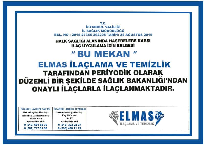 Böcek ilaçlama, haşere ilaçlama ve fare ilaçlama hizmeti almadan önce ilaçlama şirketinin mutlaka resmi belgelerini görmek isteyiniz.